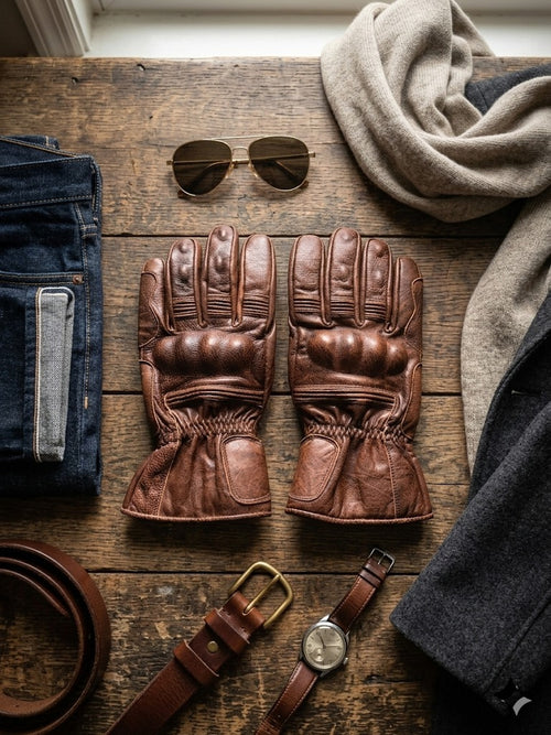Premium Brown Leather Gloves | Rugged Vintage Motorcycle-Inspired Style